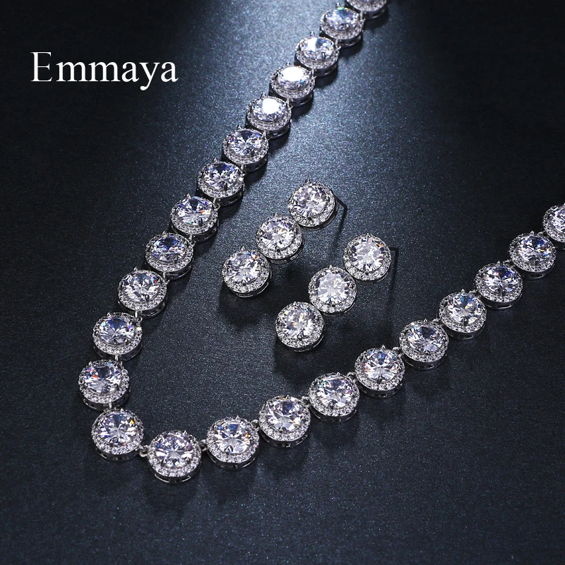 awesome Emmaya Brand Gorgeous Round Jewelry White Gold Color AAA Cubic Zircon Wedding Jewelry Sets For Love